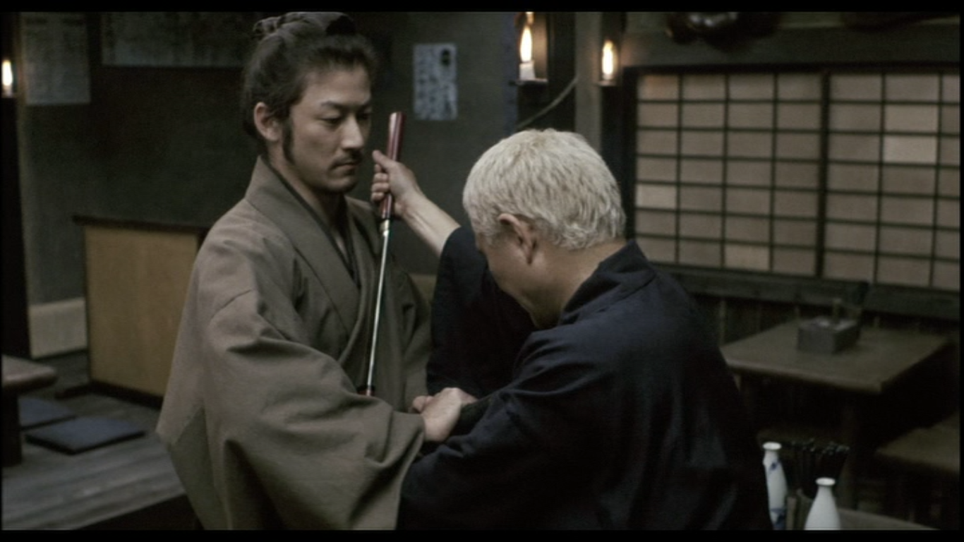 There’s a lot of plot here to go around, and Kitano tells all three stories well, intertwining them with each other to make it work as one big plot. Usually a film with so many threads can unravel quite quickly, but here it’s told as if every story affects the others, which they do. The ronin Hattori’s tale is probably the most detached from the rest of them, and so happens to be the one with the least time dedicated to it. It’s small, but effective in showing that the people who work for Ginzo (Ittoku Kishibe) aren’t necessarily horrible people. Hattori is a man without a choice, who does what he does because he’s good at it. The geisha’s story is more mixed in with Zatoichi’s, and because they spend a lot of time with him, they blend in better and feel more connected to the larger story. All three would be very entertaining by themselves, but together, they work towards a bigger picture, about what it takes to live in this time.