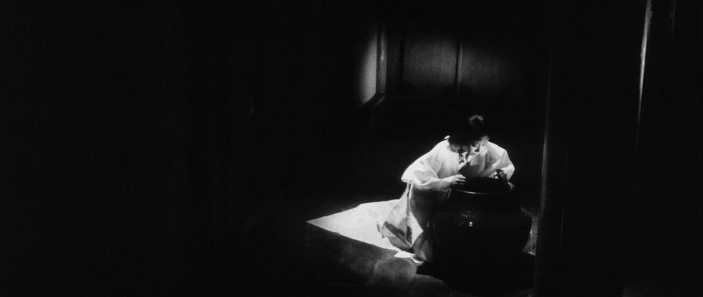 The film centres around two women: Yone (Nobuko Otowa), and her daughter-in-law Shige (Kiwako Taichi), who are spending their days awaiting the return of Hachi (Nakamura Kichiemon II) – Shige’s husband and Yone’s son. One day, a band of roving soldiers comes to their house in the grove, and they proceed to destroy everything, rape both women in turn and eventually burn down the house, leaving them both for dead. A black cat comes by and licks their wounds clean and they return as ghosts with a vendetta against all samurai. They lead unwitting men back to their phantom house in the middle of the grove before Shige seduces and kills them.