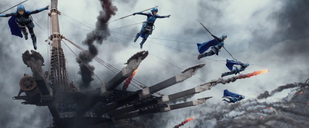 There, they meet Commander Lin Mae (Jing Tian), and Strategist Wang (Andy Lau), who introduce them to the various troops of the Nameless Order inform them of the struggles they face against the Tao Tei. And then the movie just sort of carries on with Pascal’s character still wanting to steal powder, while Damon involves himself deeper with the soldiers, and specifically Lin.