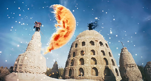Possibly the most striking misstep, other than the subtitling, is the film’s absolutely hideous use of CGI elements. I understand the desire to put a bunch of sparkles and magical bullshit into your fantasy film, but none of it is necessary and when it’s done this badly all you end up with is either unintentional hilarity or some serious cringe. The one or two fights – arguably the high point of the entire experience – are marred because some dipshit chose this time to poorly follow an After Effects tutorial. At least this level of visual incompetence made for one of my favourite scenes, of a badly chroma-keyed Wukong hovering through some horrible composite photograph masquerading as an attempt at matte painting, and poor Shu Tong just awkwardly shuffling, shifting from one weird pose to another until something happens.