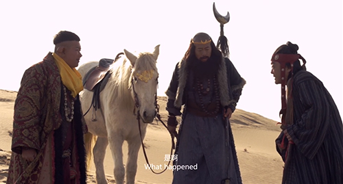 Two Princesses, Journey to the West, however, is not one of those. It is an officially-released product and you can check it out right now on Amazon Prime. Not that you should, though. This is normally the part where I’d summarise the plot of the movie but, well, it’s kind of hard to even know what’s going on when the majority of the dialogue is written in what may as well be wingdings. The best that I can summarise is that the Tang Monk (Li Le) and his three disciples (Shu Tong, Fan Hao and Hua Qiao as Sun Wukong, Zhu Bajie and Sha Wujing, respectively) arrive in Tianzhu, where the local princess has been turned into a beggar and a demon has taken her place. [Edit: turning on closed captioning offers up revised subtitles. They’re not much better, but the English is at least understandable].