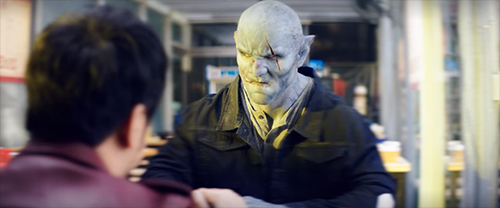 Sang is a screenwriter who suffers from insomnia: every time he drifts off he finds himself hunted by a large blue guy vaguely resembling the orcs from Bright (Kevin Lee). Because of this, he is perpetually broke, and extremely depressed. After a pancake salesman (King Shih-chieh) dissuades him from jumping off a building, Sang discovers that he can now lucid dream, and also bring back items from those dreams into the real world. He immediately gets twenty thousand yuan for his newly acquired sword and, in a pleasant character moment, immediately does the smart thing and shaves so he no longer looks like a Secret Window-era Johnny Depp. He buys himself a new computer to get to work and stays at a fancy hotel.