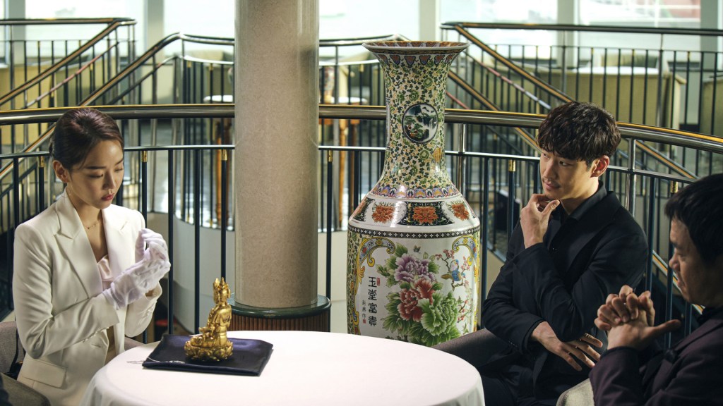 Gang Don-gu (Lee Je-hoon) is something of an old-school gentleman thief, who starts the movie stealing an ancient buddha statue from a monastery. He sells it to billionaire art collector Sang-gil (Song Young-chan), with whom he has some troubled history. After proving himself as a capable artefact hunter, Don-gu is approached by Sang-gil’s assistant Sae-hee (Shin Hye-sun), and assigned the job of finding the “Excalibur of Joseon”, the ancient king’s royal sword, from the Seolleung Royal Tomb. To pull this off, he hires archaeologist Dr Jones (Jo Woo-jin) and digger Shovel Leg (Im Won-hee), as well as his usual crew that is his adopted family.