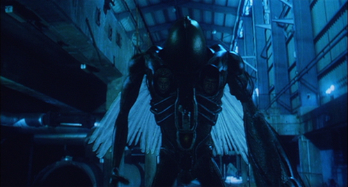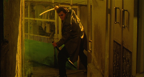 Not that Dead or Alive: Final doesn’t try to connect the trilogy. During one big clash between Ryo and Honda, images from the previous two films flash on screen, and the big penis robot that’s in the adverts is called the DOA Version 2001. And to be fair, it’s for this sort of baffling nonsense that I watch early 2000s Miike. Of course his sort-of Blade Runner film looks like it was shot in an abandoned industrial estate, drenched entirely in an incredibly ugly piss-yellow filter to make the world look more arid and apocalyptic. His worldbuilding is weak and exposited ad nauseum, and considering how much it needs to establish before even getting the story going, is mind-boggingly short at under 90 minutes.