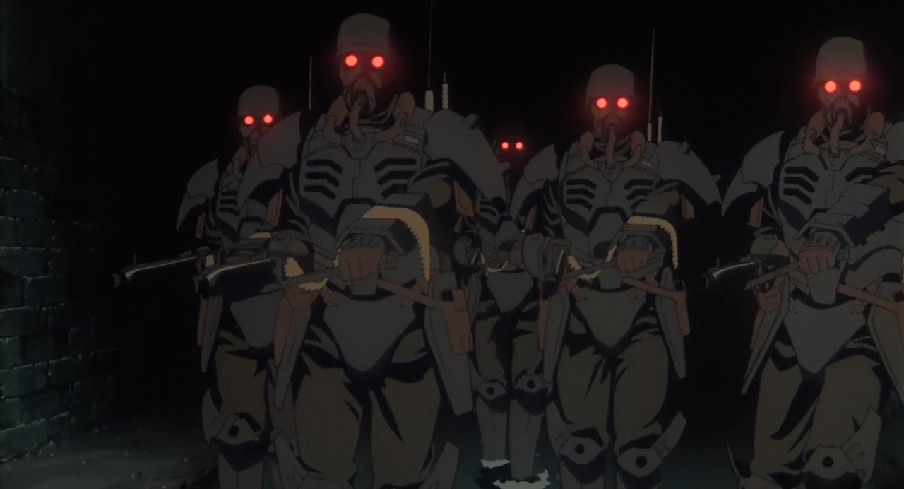 Jin-Roh: The Wolf Brigade is the third film in the series (though not a sequel), and the first to be animated, as the other two were live-action tokusatsu pieces. Set in an alternate 1950s Germany-occupied Japan (a detail I constantly found myself forgetting), the country’s aggressive approach to post-war economic growth has caused much of the population to fall into incredible poverty. In response, a group of violent anti-government militants calling themselves the Sect is formed, and in order to combat them, the government creates the Kerberos Panzer Corps.