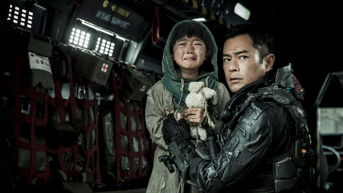 Other than that, there’s not much to this film. It’s visually dull, except during the establishing shots where we see the city overrun with Pandora vines, and filled with unearned orchestral swellings. The story is supported by the b-plot of Louis Koo learning to overcome the guilt of losing his daughter, while making amends with his former teammate Skunk. It’s not terrible, and once they get past the initial forced drama the dynamic between Koo and Keung is pretty good. That is, when the little girl isn’t there to force another Koo flashback. I’ve seen worse CGI-heavy action sci-fis, and I’ve certainly seen lots of better ones. There are too many visual reminders of other films here, like the in-helmet shots lifted straight out of the Marvel films, that only result in you wishing you were watching something else.