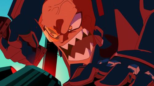 The movie’s other big standout feature is its sense of humour. Trigger has always had its tongue in its cheek – you can’t produce work like Kill La Kill otherwise – and here the satire, trope lampshading and winks to the camera are infrequent enough to not be distracting, but have enough of a presence to keep everything light and fun. Deus, a deceased scientist who turns out to be a key ally, is the primary source of this, shrugging away the fact that half the things involving him happen by coincidence.