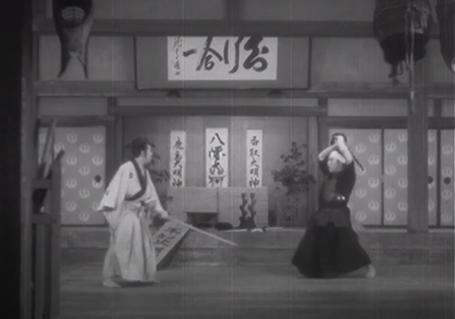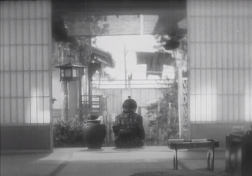 The titular pot is the film’s MacGuffin, a jar supposedly containing a map to one million ryo hidden by an old emperor for any unforeseen military expenses. The old pot is in the possession of a young lord Yagyu Genzaburo (Kunitaro Sawamura). When his older brother, who gave the pot as a wedding gift to his brother, returns to take the pot back, Genzaburo learns of its true nature but not before his wife has sold it to a local merchant.