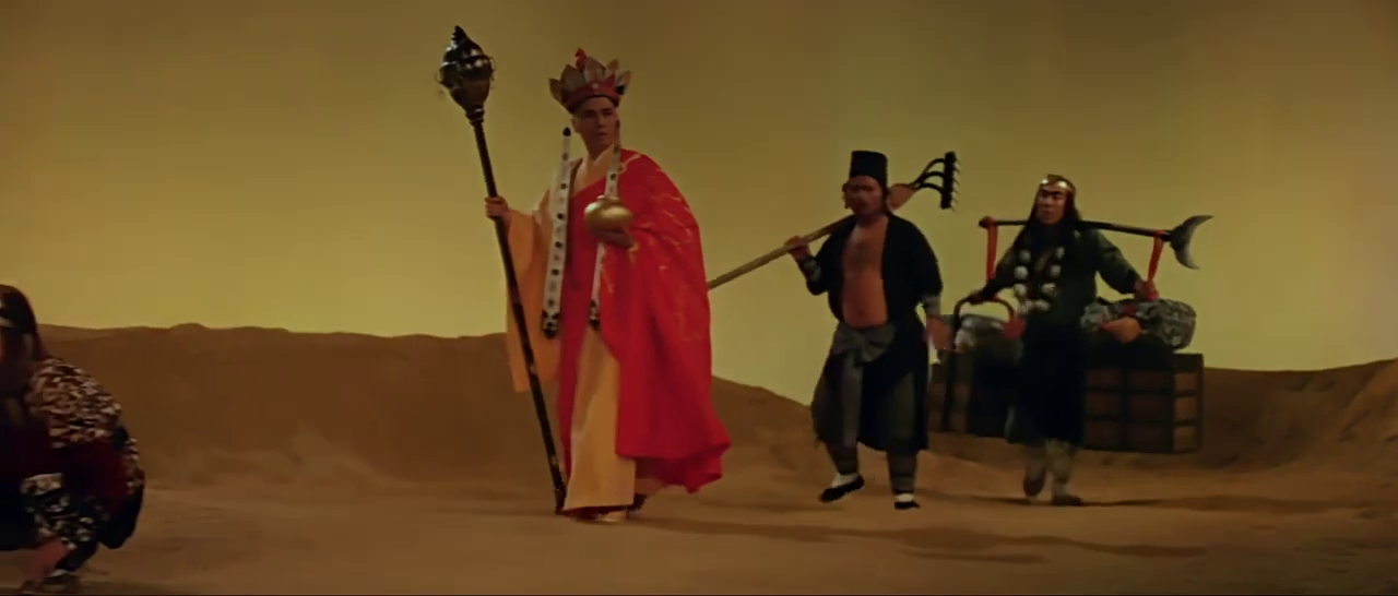 In a way, this might be the most accurate way to depict Journey to the West, with so many battles described in the form of poems, displaying them as opera dance numbers seems really fitting. As fights, they’re not exactly great: not a single strike actually looks like it hits, but that’s really not the point. The movie’s intentions are shown straight away when we see Wukong for the first time: he pretty much never takes a normal step forward, choosing instead to cartwheel, somersault and leap his way across the stage in a performance that must be absolutely exhausting – so props to Lau Chung-chun’s efforts.