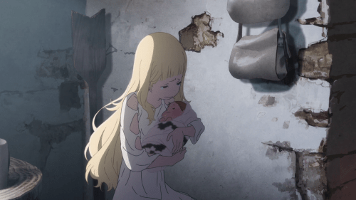 Without a compelling mother and child dynamic, the story goes nowhere so it’s a good thing that Maquia has those. This allows it to explore what it means to be a mother: the sacrifices and choices one must make, picking the betterment of your child over yourself. Maquia shows us this in multiple ways: primarily through the actions of its title character, who has no blood relation to her son, but who nonetheless feels that drive to do anything to protect him. It’s worth pointing out that Ariel says this to his mother, but like most children can’t keep that promise when it’s time for him to move out on his own. The other character who does what she must for the sake of her child is Leilia, whose pregnancy was definitely non-consensual, but who will nonetheless do what she must to ensure it has the best possible chance at life.